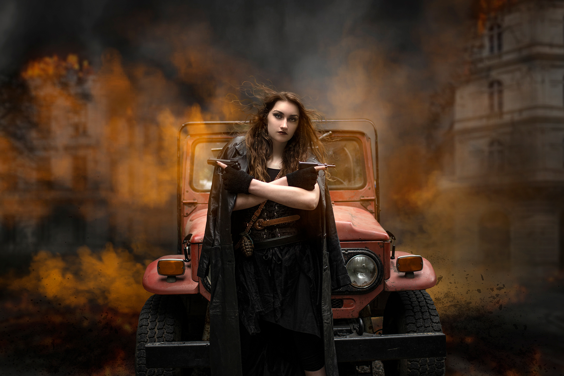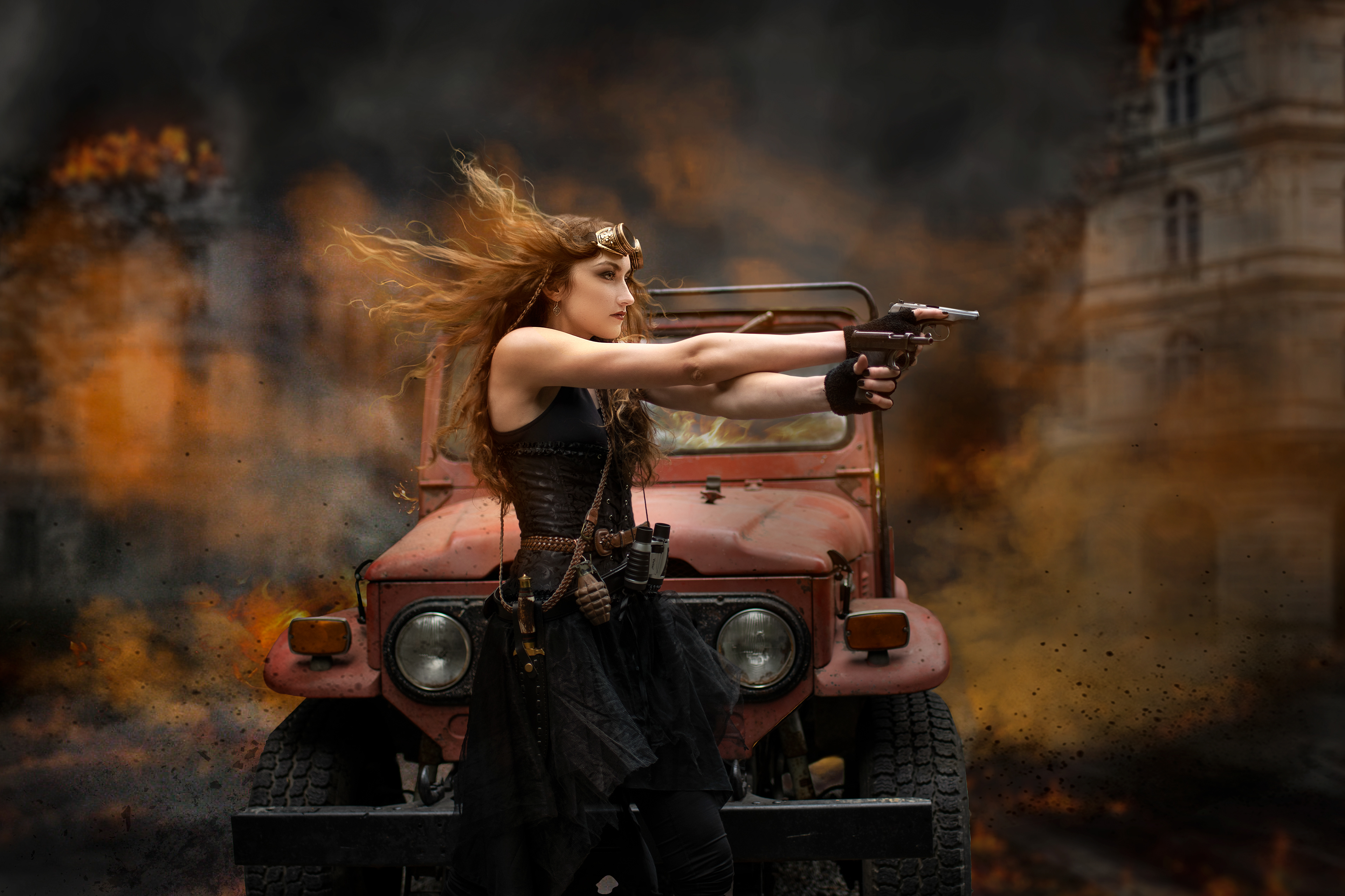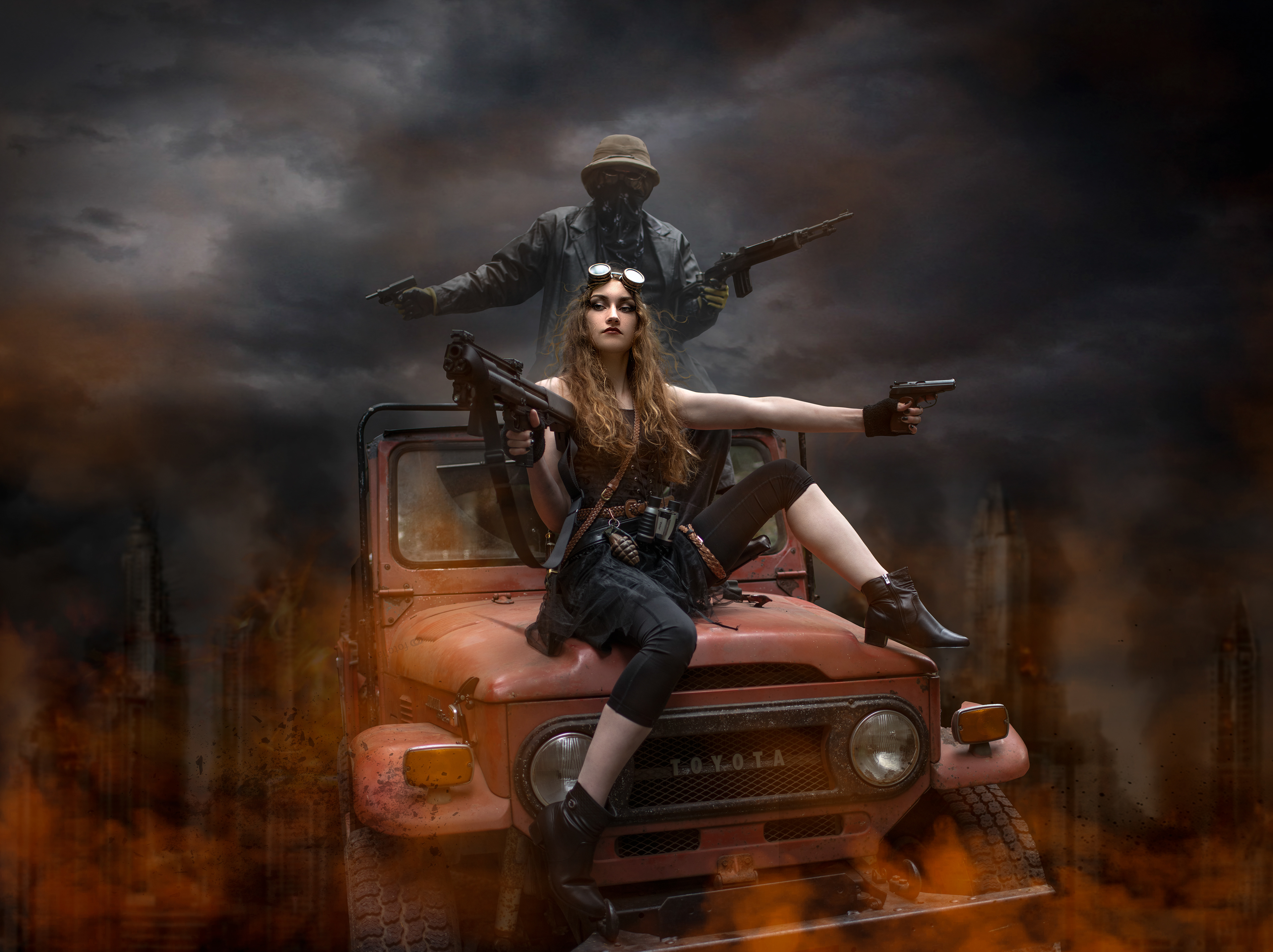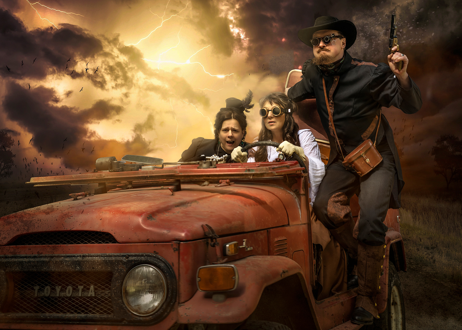 Another of our own vehicles (1972 Toyota FJ40) in a "Steampunk" shoot with models.