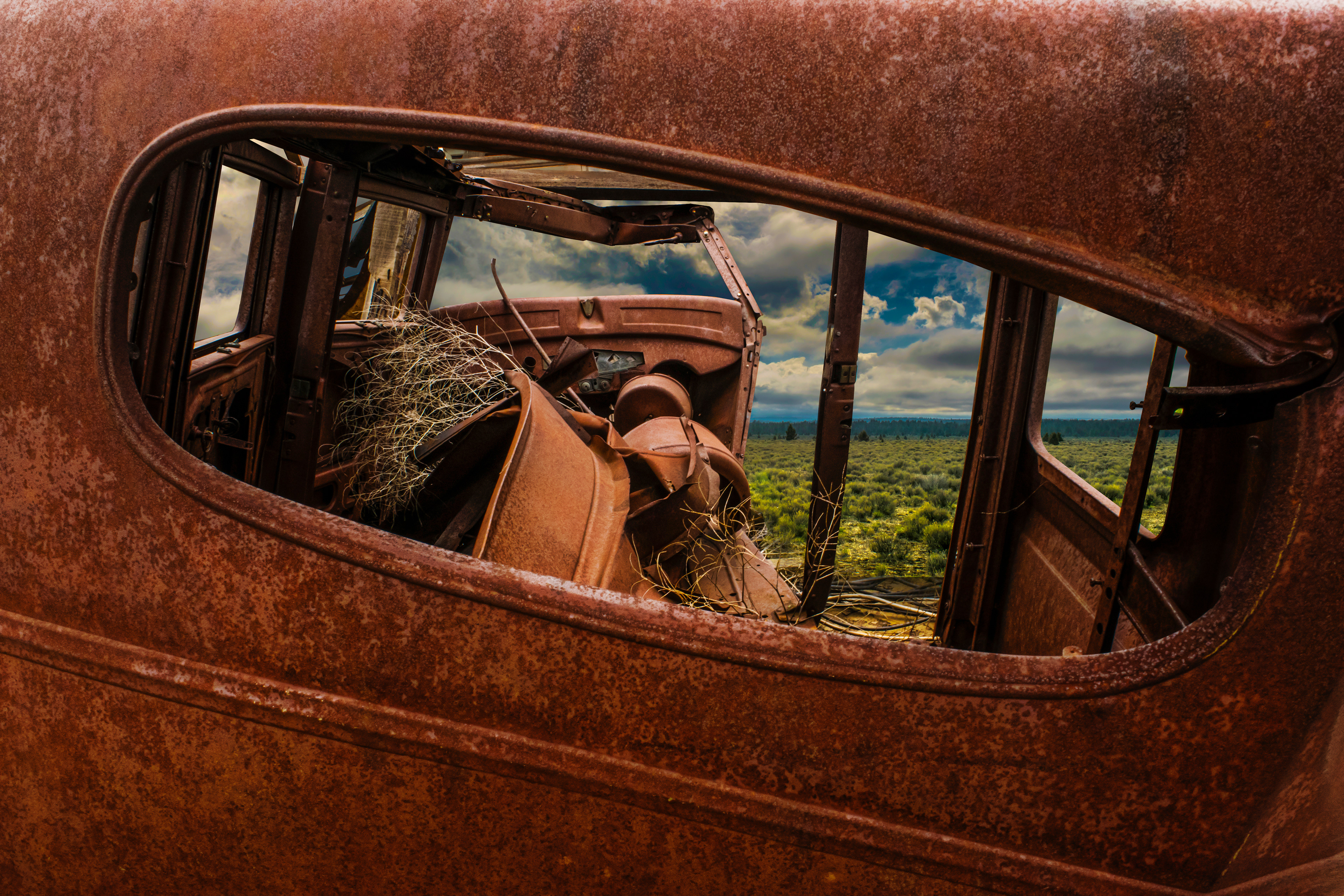 I never miss the opportunity to capture an image of "rust." Old rusty machinery, farm equipment or trucks (and autos), or anything else shouting with history always catches my eye! I love the patina, texture and flow of colors.