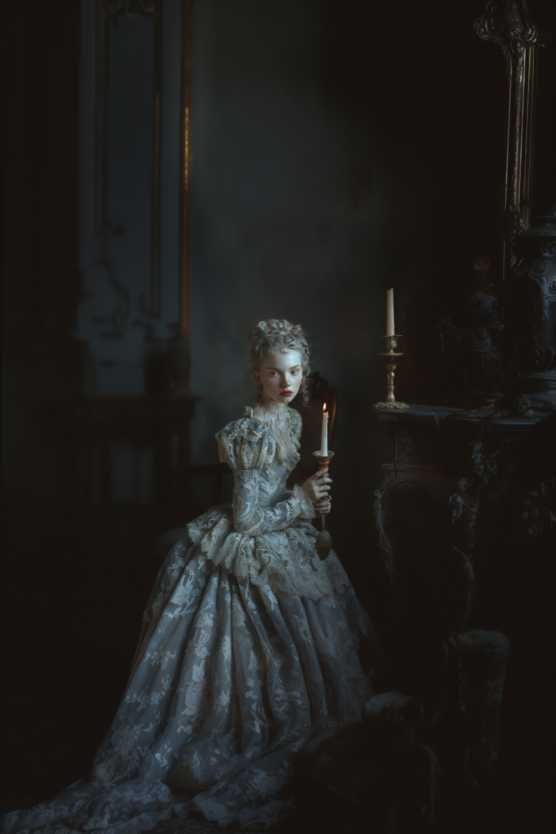Mystery is a common thread in both Alice in Wonderland and Rococo. I aimed to capture that elusive quality where every detail holds a secret. Whether it’s a hidden symbol or a subtle play of light, I wanted each element to spark curiosity and imagination. This mystery is what makes art compelling—it invites us to explore deeper.